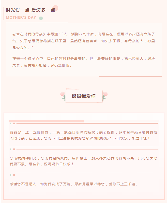 概要:每一个母亲都闪闪发光 每一个母亲都值得被时光宠爱 今天祝天下母亲节日快乐